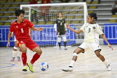 Timnas Futsal Putri Indonesia berhadapan melawan Vietnam dalam pertandingan final SEA Games 2025 di Thailand, Kamis (18/12).
