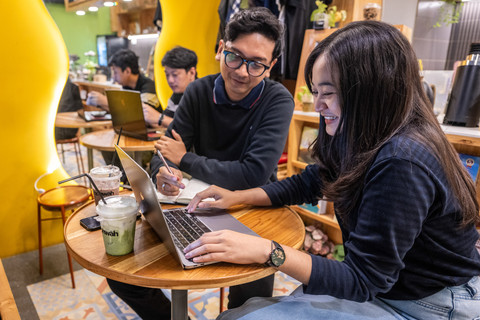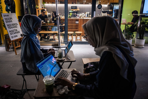 Warga mengoperasikan laptop di salah satu kafe, Gelanggang Inovasi dan Kreativitas UGM, Yogyakarta, Rabu (18/3/2026). Foto: Bayu Pratama S/ANTARA FOTO